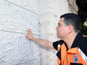 Kepez Belediye Başkanı Hakan Tütüncü de, DokumaPark’a kazandırdığı kale burcu kitabesinde incelemelerde bulundu.