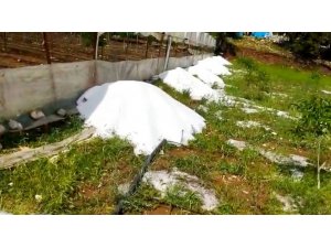 Mersin'in Erdemli ilçesinde kırsal bölgelerde etkili olan dolu yağışının 100 dekar tarım arazisinde zarara yol açtığı bildirildi.