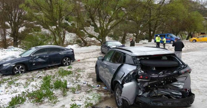 Burdur Antalya karayolunda, dolu yağışı nedeniyle 3 aracın karıştığı kazada 4 kişi yaralandı.