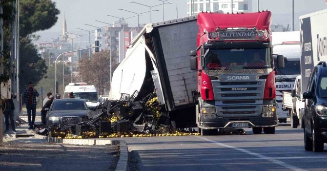 Olay, Mersin-Antalya D-400 karayolu Talat Göktepe Çamlığı girişi yakınlarında meydana geldi. Alınan bilgiye göre 07 AYV 229 plakalı tırın dorsesi iddiaya göre araç seyir halindeyken bağlantı noktasından çıktı. Dorsedeki meyveler ise yola saçıldı. Trafik akışı uzun süre tek şeritten sağlandı.