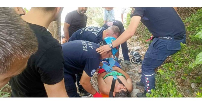 Hatay'da serinlemek için girdiği Deliçay'da ayağı kayalıklara sıkışarak yaralanan şahsı itfaiye ekipleri kurtardı.