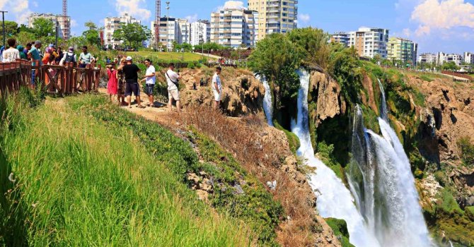9 günlük Kurban Bayramı tatili nedeniyle Antalya'yı tercih edenler yerli ve yabancı tatilciler bayramın son gününde Konyaaltı Sahili'nin ardından Düden Şelalesi'nin deniz ile buluştuğu noktaya akın etti. Hissedilen nem oranının yüzde 75, hava sıcaklığının ise 39 derece olarak ölçüldüğü kentte Antalyalılar ile kente gelen yerli ve yabancı turistler sahillere akın ederken tatilcilerin bir diğer uğrak noktası ise Düden Şelalesi'nin deniz ile buluştuğu nokta oldu. Tatilciler şelalenin eşsiz manzarası eşliğinde fotoğraf çekindi. Bazı turistler yasak olmasına rağmen korkulukları aşarak kayalıkların uç noktasında tehlikeye aldırmadan fotoğraf çekti. Bayramın son gününü balık tutarak geçirmek isteyen bazı vatandaşlarda kayalıklardan aşağıya inerek şelalenin altında balık tuttu.