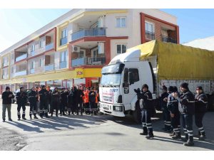 Efeler Belediyesi, Kahramanmaraş'ta meydana gelen ve 10 ili etkileyen depremlerde zarar gören vatandaşlar için yardım çalışmalarını sürdürüyor. Belediye ve Efeler halkının el ele vererek topladığı acil yardım malzemeleri ardı ardına hareket eden tırlarla bölgeye ulaştırılırken 2 greyder operatörü ve bir konteyner de depremzedeler için yola çıktı.