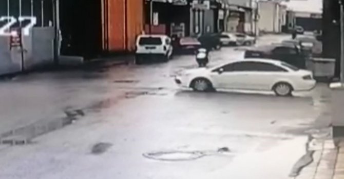 Antalya'nın Manavgat ilçesinde otomobil ile ehliyetsiz ve kasksız kuryenin kullandığı motosikletin çarpışması sonucu meydana gelen kazada motosiklet sürücüsü, başını otomobilin camına çarparak ağır yaralandı. Kaza anıysa güvenlik kameralarına saniye saniye yansıdı