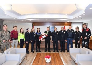 Türk Polis Teşkilatı'nın kuruluşunun 177. yıl dönümü ve 10 Nisan Polis Haftası dolayısıyla İl Emniyet Müdürü Doğan İnci ve beraberinde görevli polisler, Vali Süleyman Elban'a nezaket ziyaretinde bulundu.
