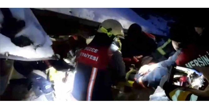 Şu ana kadar 5 depremzedeyi canlı olarak enkaz altından çıkaran ekiplere Düzce'den 13 kişilik itfaiye ekibi daha takviye olarak gönderildi. Düzce Belediyesi İtfaiye Müdürlüğü ekipleri 22 kişilik ekibi ile arama kurtarma çalışmalarını sürdürecek.