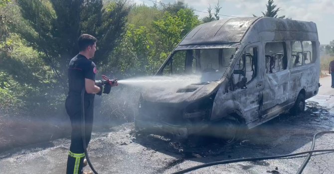 D-400 Karayolunda seyir halindeki minibüs motor bölümünde çıkan yangın sonucunda yanarak kullanılamaz hale geldi.