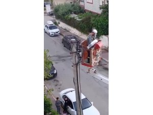Kuzeyyaka Mahallesi'nde meydana gelen olayda bir kumrunun elektrik tellerine takıldığını ve çaresizce çırpındığını gören vatandaşlar AEDAŞ ekiplerini arayarak yardım istedi. Vatandaşların ihbarı ile belirtilen adrese gelen AEDAŞ ekipleri vinç yardımıyla kumrunun takıldığı elektrik direğine ulaştı. Gerekli güvenlik önlemlerini alan çalışan ayağından tellere dolanan kumruyu bulunduğu yerden kurtardı. Ardından kumrunun durumu kontrol eden görevli vincin aşağıya inmesinin ardından kumruyu bırakarak doğal yaşamına dönmesini sağladı.