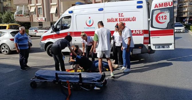 Antalya'nın Manavgat ilçesinde elektrikli bisiklet ile ticari taksinin çarpışması sonucu meydana gelen kazada elektrikli bisiklet sürücüsü yaralandı.