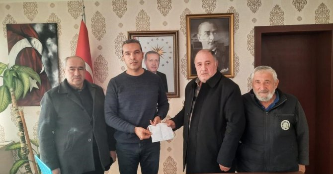 Yeniceköy Muhtarı Akın Gürkan, köylerinden malzeme dışında toplanan 14 bin 400 TL'yi deprem yardım hesaplarına ulaştırılması için Emet Kaymakamı Hasan Çiçek'e teslim etti.