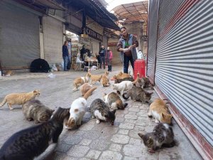 Asrın felaketinin yerle bir ettiği Hatay'da sokak hayvanları da adeta kimsesiz kalmıştı. Antakya ilçesinin merkezi noktalarında nüfusun azalmasıyla birlikte kediler, yiyecek bulmakta güçlük çekmeye başlamıştı. Sokak hayvanlarını unutmayan devlet kurumları ve hayvansever vatandaşlar oldu. Antakya'da bulunan tarihi Uzun Çarşı'da esnaflık yapan Emine Çayırcık da bu hayvanseverlerden birisi ve günlük 50 kediyi besliyor. Eline ciğeri almasıyla "pisi pisi" diyerek onlarca kediyi başına toplayan Çayırcık, yaptığıyla da görenlerin dikkatini çekiyor.