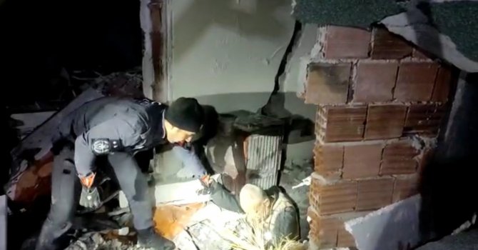 Kahramanmaraş'ta meydana gelen depremler nedeniyle Malatya'da çöken bir binada mahsur kalan 4 kişilik aileyi dalgıç polisler kurtardı. Kurtarılan aileden yaşlı teyzeyi polisler sırtında taşıdı.