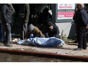 Kahramanmaraş merkezli depremde, İskenderun'daki bir enkaz altından bir kişinin cansız bedeni çıkarıldı. Battaniyeye sarılan kişinin cansız bedeninin başında yakınları gözyaşları döktü. Biri kadın iki kişi hayatını kaybeden kişinin yanına çömelerek, battaniye üzerinden yakınlarını elleriyle sevdi.