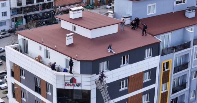 Olay yerine gelen itfaiye ekipleri tarafından bina önüne hava yastığı açılırken polis ekipleri çatıya çıkarak Ali Y." yi ikna etmeye çalıştı. Vatandaşların ilgi ile izlediği olayda yaklaşık yarım saat süren konuşma sonrasında ikna edilen Ali Y. polis ekipleri nezaretinde aşağıya indirilerek ifadesi alınmak üzere karakola götürüldü.