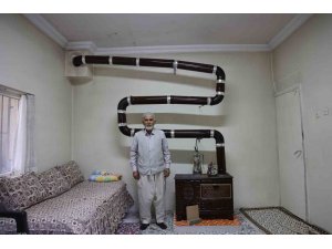 Kahramanmaraş'ta yaşlı bir adam, eşi üşümesin diye yaşadıkları evinin odasına kurduğu sobanın borularını kıvrım kıvrım yapınca ortaya ilginç bir görüntü çıktı.