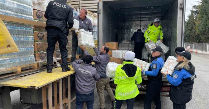 Eskişehir İl Emniyet Müdürlüğü personelleri tarafından deprem bölgesine 4 tır su, temel gıda ve hijyen malzemesi gönderildi.