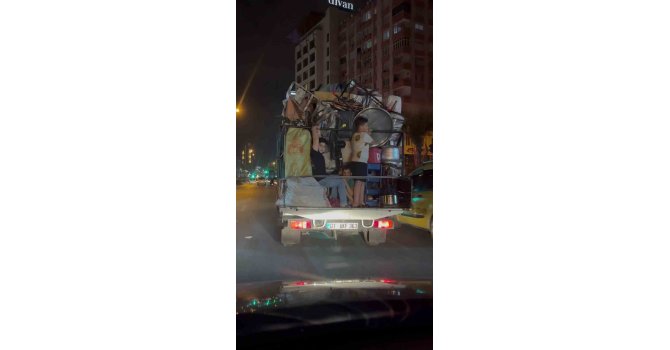 Adana'da eşya yüklü kamyonette 3 çocuğun tehlikeli yolculuğu yürekleri ağza getirdi.