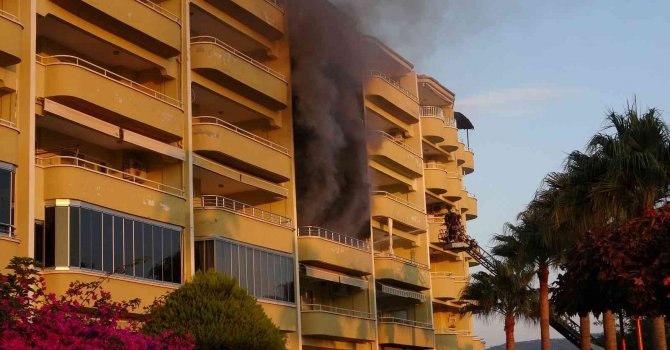 Mersin'de 5 katlı yazlık sitenin ikinci katında çıkan yangında, baba ve oğlunun kaldığı daire kullanılamaz hale geldi.