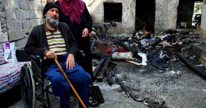 Gözyaşlarıyla yaşadığı anları anlatan bedensel engelli Yunus Üğten ise, "Tek ben evdeydim. Hiç kimse yoktu, çocuklar gelip beni çıkarttılar. Yangını gördüm ama bir şey yapamadım. Gözümün önünde ev yandı. 10 gündür hiç kimseden bir şey yok. Böyle perişanız" diye konuştu.