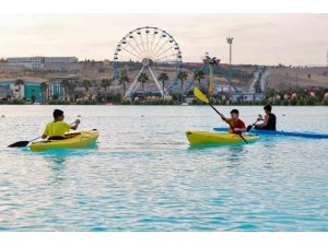 Kahramanmaraş'ta 79 bin metrekarelik büyüklüğü ve manzarasıyla dikkat çeken EXPO 2023 Kristal Lagün Göleti, kano branşında şampiyon sporcuların yetişeceği önemli bir tesis özelliğine de bürünüyor.
