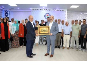 Eğitim-Bir-Sen ilçe başkanları yaptığı yeni üyelikleri Yavuz'a takdim ederken Eğitim-Bir-Sen Adana Şube Başkanı Mehmet Sezer de Talat Yavuz'a tablo hediye etti.