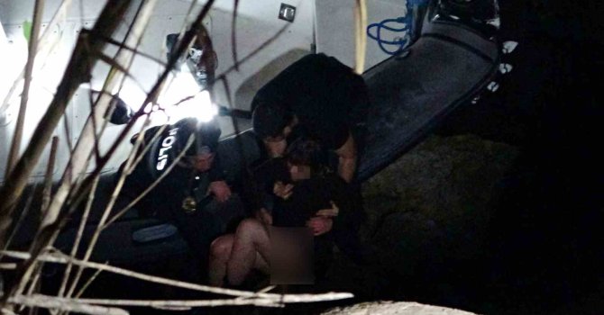 Bölgeye gelen polis ve itfaiye ekipleri karadan ulaşımın imkansız olduğu kızın bulunduğu alan için Antalya Emniyet Müdürlüğü Deniz Liman Şube Müdürlüğü'ne bağlı ekipten destek istendi. Bölgeye gelen deniz polisi bölgede arama yaparken genç kız ekiplere "Buradayım" diyerek yerini belli etmeye çalıştı. Sığ ve kayalık alana girmekte zorlanan deniz polisi kısa süreli uğraşın ardından genç kıza ulaştı. Deniz polisinin kucağına alarak kayalık alandan çıkardığı genç bota alınırken yaraları nedeniyle acı içinde çığlık attığı görüldü.