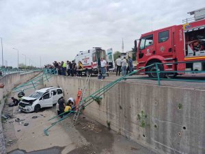 Hatay'da kadın sürücüsünün fren yerine gaza basması üzerine su kanalına uçan araçtaki 2 kişi yaralandı.