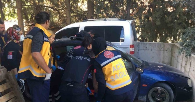 Burdur'un Bucak ilçesinde otoparktan arabasını çıkarmak isterken frenle gazın yerini karıştıran yabancı uyruklu şahıs duvara çarptı. Ayağı sıkışan şahsı itfaiye kurtardı.