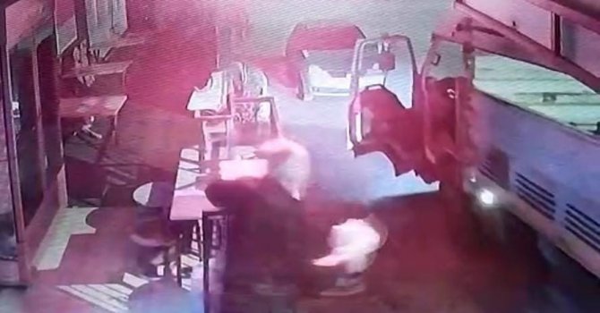 Adana'da park halindeki kamyonetin freni boşalınca hareket etmeye başladı, fırındaki sürücü ise yetişmeye çalışırken iki araç arasında kalmaktan son anda kurtuldu. Saniyelerle ölümden dönen sürücü kamyonetini durdurmayı başarırken, o anlar ise saniye saniye güvenlik kamerasına yansıdı.
