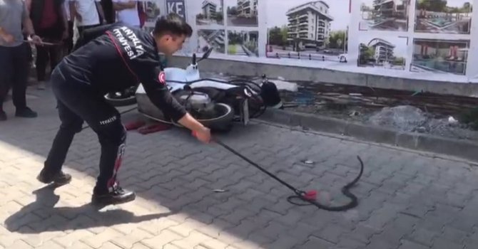 Gazipaşa Pazarcı Mahallesi Balkan Caddesi'nde bulunan Zeliha Tuncer Anadolu İmam Hatip Lisesi Fen ve Sosyal Bilimler Proje Okulu yakınlarındaki bir inşaatın çevresinde görülen yılan, çevredeki vatandaşların ve öğrencilerin korkuyla etrafa kaçışmasına neden oldu. Yılanı gören vatandaşlar 112 Acil Çağrı Merkezi'ni arayarak yardım istedi. İhbar üzerine olay yerine itfaiye ekipleri sevk edildi. Olay yerine gelen itfaiye ekipleri, yılanı yakalamaya çalıştıkları esnada yılanın yol kenarında park halinde bulunan motosikletin içine girmesiyle zor anlar yaşadı. Uzun uğraşlar sonucu girdiği motosikletten çıkarılan yılan, itfaiye ekiplerince güvenli bir şekilde muhafaza altına alındı. Ekiplerin muhafaza altına aldığı yılan, yapılan kontrollerinin ardından güvenli bir alana götürülerek doğal yaşam alanına bırakılacak.
