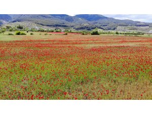 Osmaniye'de yağışlar sonrası çiçek açan gelincikler buğday tarlasını adeta kırmızı renge boyadı. Yeşil ile kırmızı renklerin oluşturduğu renk cümbüşü masalsı görüntüler oluştururken kendiliğinden açan ve ince dallı ve narin yapraklardan oluşan gelincikler buğday tarlasını süsledi.