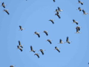 Kuş gözlemcisi Erol Yüksek, "Müthiş bir leylek göçü var şu an, binlercesi geliyor. Her sene bu zamanlarda buradan geçiyorlar. Daha önce burada dinleniyorlardı ama şu an durmadıla,r yollarına devam ettiler, çok güzel bir manzara" dedi.