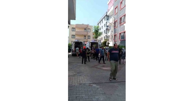 Hatay'da dış cephe mantolama işi yapan inşaat işçilerini taşıyan iskelenin ipi koptu, iskeleden düşen 2 işçi yaralandı.