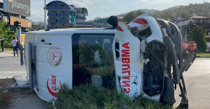 Antalya'nın Gazipaşa ilçesinden Alanya'ya hasta sevk eden ambulansın kamyonetle çarpışıp devrilmesi sonucu meydana gelen kazada 3'ü sağlık personeli 8 kişi yaralandı.