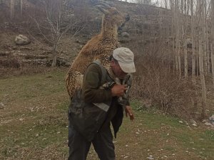 Öte yandan, yaban keçisini sırtında taşıyan Nuri Çadır, "Bu hayvanlardan 20 yıl önce sadece 6 tane vardı. Şimdi sayıları arttı. Eski dönemlerde yaşamış hayvanlar. Şu anda bu hayvanlardan bir tanesi hastalanmış. Hasta olan hayvanın ilk tedavisini yaptık. Biraz zayıf düşmüş. Şerit ihtimali vardı. Bu da canlı hayvanın taşıma özelliği. İp bağlamıyoruz. Tekrar doğaya salacağız" ifadelerini kullandı.