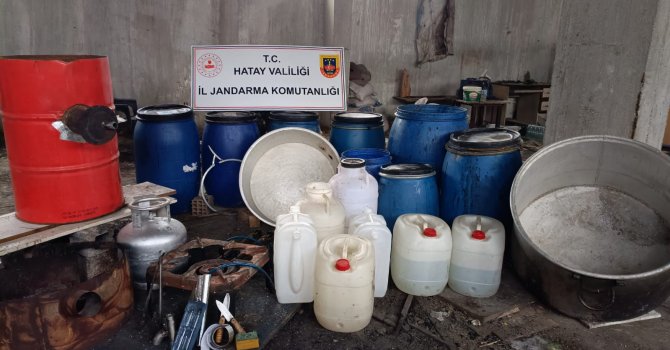 Hatay'da jandarma ekipleri tarafından bir işyerine yapılan baskında 1 ton sahte alkol ele geçirildi.