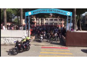 Motosikletli polis ekibinin eskortluk ettiği bisiklet turu etkinliği belirlenen güzergahların geçilmesinin ardından okul bahçesinde sona erdi.