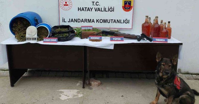 Alınan bilgiye göre, Hatay İl Jandarma Komutanlığı, Antakya İlçe Jandarma Komutanlığı ve KOM Şube Müdürlüğünün müşterek yürüttüğü operasyonda Uzunalıç Mahallesi'nde G.S. ve H.İ.S. isimli şahısların ev ve eklentilerinde yapılan aramada 30 kilo 170 gram kubar esrar, 86 kök kenevir bitkisi, 1 adet hassas terazi, 1 adet 9 mm tabanca, 117 adet 9 mm tabanca fişeği, 5 adet 5,56 mm fişek, 3 adet ruhsatsız av tüfeği, 5 adet bıçak, 12 litre sahte viski ele geçirildi. Gözaltına alınan G.S. ve H.İ.S hakkında adli işlem yapıldı.