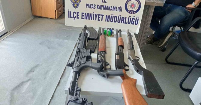 Hatay'ın Payas ilçesinde bir ikamette yapılan baskında 4 adet ruhsatsız tüfek, şarjör ve mermi ele geçirildi.