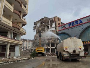 İlçede depremlerde yıkılan ya da ağır hasarlı olduğu için yıkım kararı alınan binalarda enkaz kaldırma çalışmaları ekiplerce gerçekleştiriliyor. Yıkım işleminin yapılacağı alanlarda herhangi bir olumsuzluk yaşanmaması için güvenlik önlemi alan ekipler, yıkımın ardından çıkan molozları kamyonlarla enkaz döküm alanlarına götürüyor.