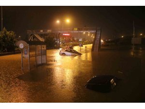 Meteorolojini turuncu kodlu uyarı verdiği Hatay'ın Antakya ilçesinde aniden bastıran sağanak yağışla birlikte göle dönen caddelerde çok sayıda araç mahsur kaldı. Araçlar su içerisinde adeta kayboldu.