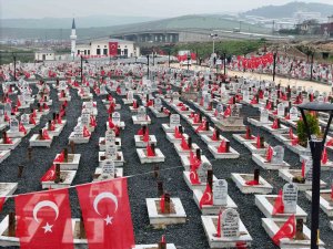 Hatay'da bulunan deprem mezarlığı 6 Şubat depremlerinin 1. yıl dönümünde Türk bayrakları ile donatıldı.
