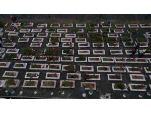 Özlem duyduğu yakınlarının kabirlerine akın eden yakınları dualara okudu. Mezarlıkta yaşanan yoğunluk ise dron ile görüntülendi.