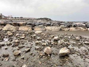 Hatay'ın Arsuz ilçesinde fırtına nedeniyle denizde 20 metreyi bulan çekilme yaşandı.