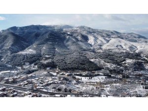 Hatay'ın Belen ilçesinde ve Amanos dağlarına yağan kar ile oluşan kartpostallık görüntüler drone ile görüntülendi.