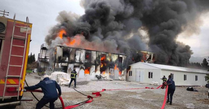 Hatay'da şantiye alanında bulunan konteyner yemekhane alevlere teslim oldu. Küle dönen yemekhanedeki alevler itfaiye ekiplerince söndürüldü.