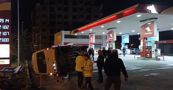 Hatay'ın İskenderun istikametinden Antakya istikametine giden 31 C 2412 plakalı minibüs, kayganlaşan yolda direksiyon hakimiyetinin kaybedilmesiyle beraber yol üzerindeki benzin istasyonuna daldı.