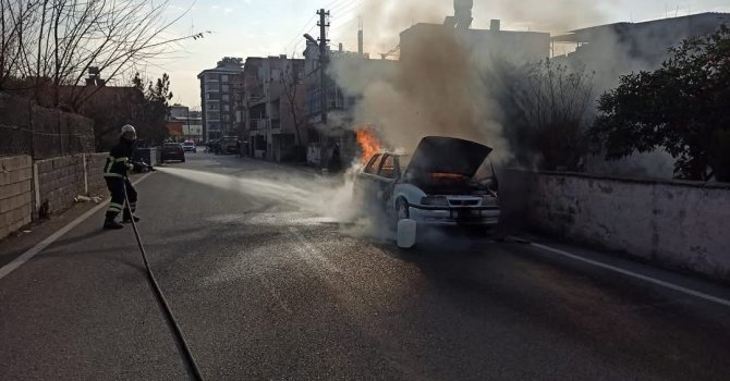 Hatay'ın Payas ilçesinde hareket halindeki otomobilde çıkan yangın, itfaiye ekiplerince söndürüldü.