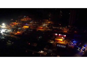 Hatay Eğitim ve Araştırma Hastanesi'nin bahçesine kurulan ve yaralı vatandaşların ilk sevk edildiği, şifa sunulan sahra hastanesi havadan görüntülendi.