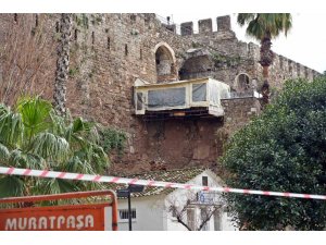 Antalya'nın tarihi Kaleiçi surlarında, 2 gün süren sağanak yağışın ardından yıkıntılar oluştu. Toprağın kayıp surların çökmesiyle birlikte, olayın yaşandığı yerdeki bir işletme adeta havada asılı kaldı.